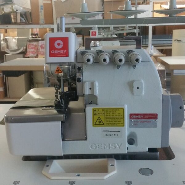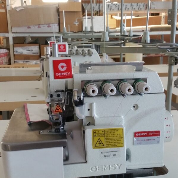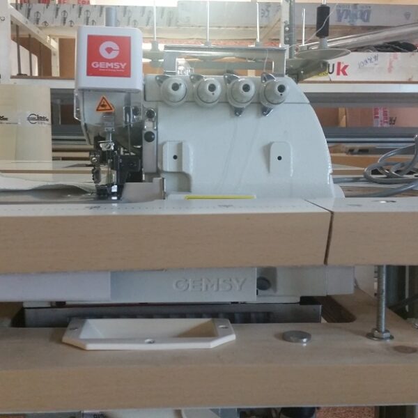 Macchina tagliacuci Gemsy, due aghi, quattro fili, direct drive, completa di tavolo, sostegno e motore. -