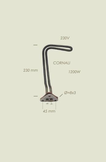 Resistenza Spidivap Cornali con flangia triangolare Lunghezza 170 mm Lato flangia 45 mm 3 fori, 10 mm Potenza 850 W 230 V48.57€ Aggiungi al carrello -