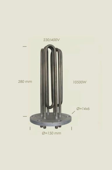 Resistenza Sidi con flangia tonda Lunghezza 280 mm Diametro flangia 150 mm 6 fori, 14 mm Potenza 10500 W 230/400 V161.93€ Aggiungi al carrello -