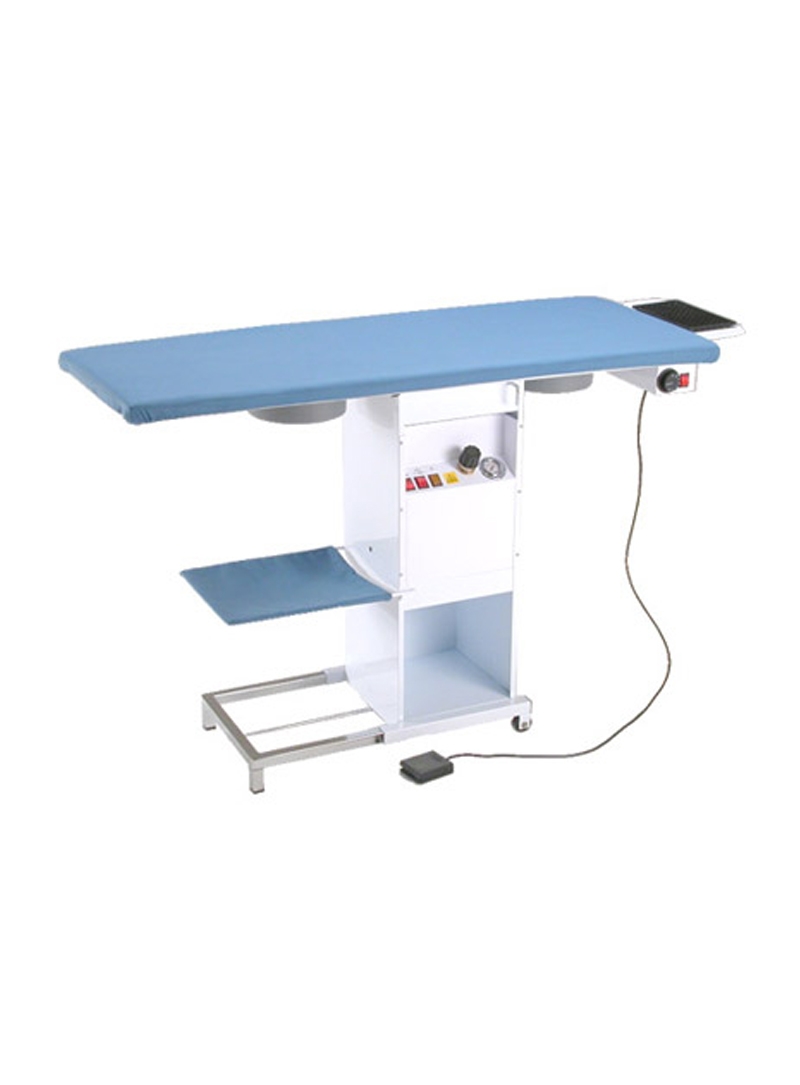 Tavolo da stiro rettangolare, dimensione piano di lavoro129X51 cm, riscaldato ed aspirante. Caldaia da 2,8Lt, con ricarica automatica e ferro da stiro professionale Bieffe