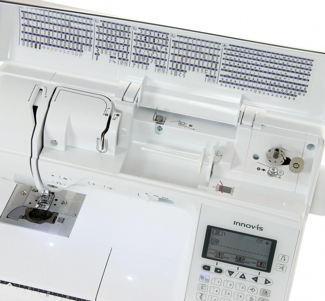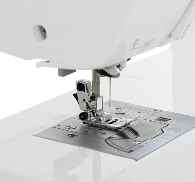 - Ampio spazio di lavoro (210 mm) dall’ago al corpo della macchina. Ideale quando si lavora su grandi progetti, come trapunte, tende, ecc.