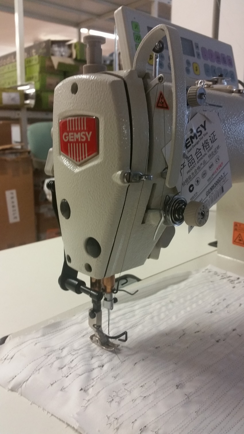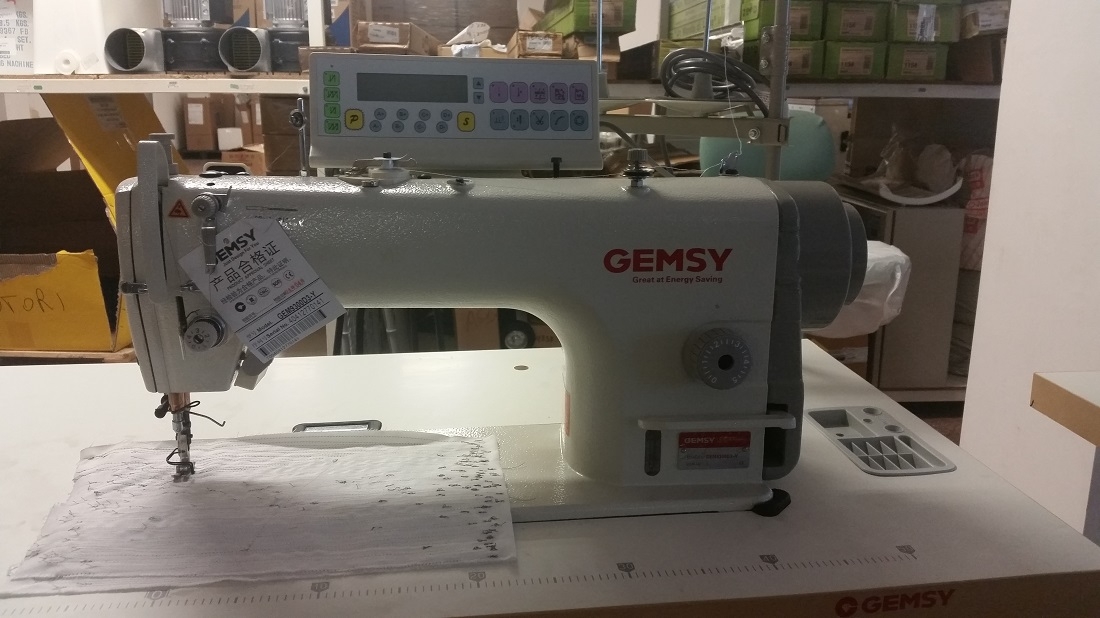 Macchina lineare Gemsy rasafilo, scartafilo, travettatura, con display e alzapiedino, completa di tavolo, sostegno e motore.
