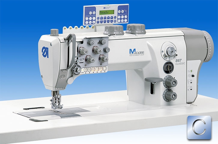 Crochet verticale maggiorato. Alzata piedini 20 mm. Passaggio utile a destra dell’ago 335 mm. altezza 125 mm. Frizione di sicurezza. Luce fredda integrata. Tastiera con selezione tasto preferenziale. Motore diretto con pannello di controllo DAC-CLASSIC e consolle esterna OP1000. Velocità fino a 3.400 punti/min. Lunghezza punto 12 mm.