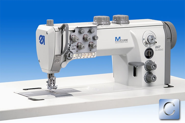 | 867 E 122/8-9 | Serie di cucitura per cuciture a due aghi a 8 mm. di distanza su materiali medi. Piedino compensatore. Lunghezza punto max. 9 mm. Aghi Nm 110-140. | ||