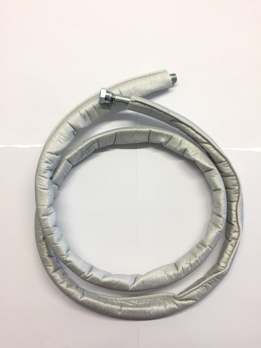 Tubo in teflon raccordato alle estremità in acciaio inox, ricoperto di guaina metallizzata imbottita