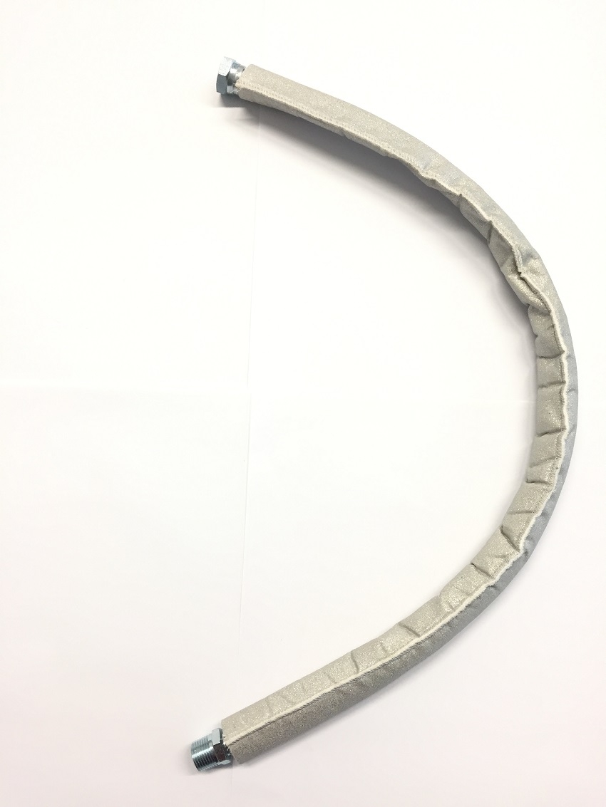 Tubo in teflon raccordato alle estremità in acciaio inox, ricoperto di guaina metallizzata imbottita