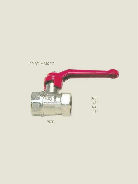 Valvola a sfera in acciaio, con levetta rossa, tra le più comuni, consente apertura/chiusura e riduzione del flusso