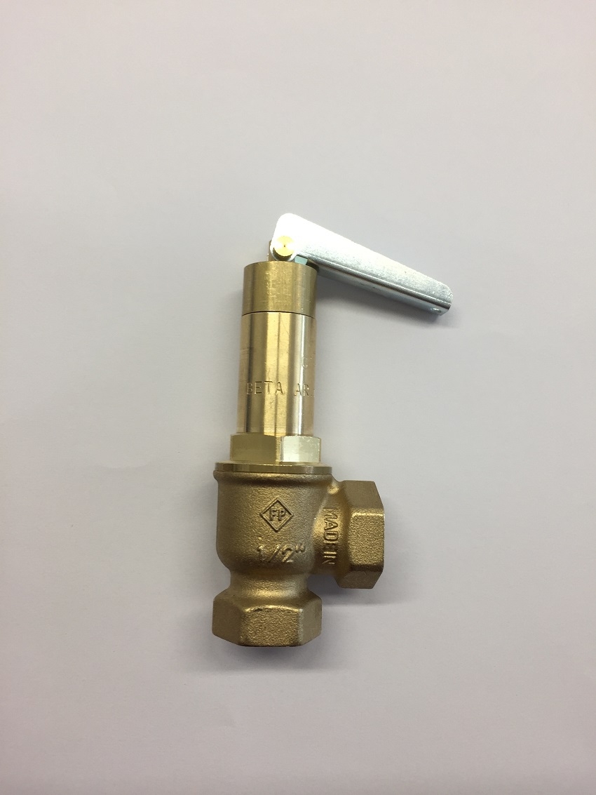 Valvola di sicurezza in metallo, con leva, a scarico. Impiegata in ambito stiro in presenza di aria compressa e vapore per garantire maggiore sicurezza di impiego.